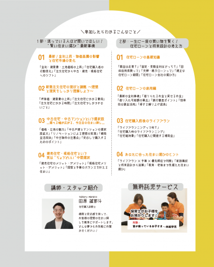 自分たちの年収・子育てプラン・家族構成に合わせて「わが家の場合」を具体的にイメージできる時間になります。